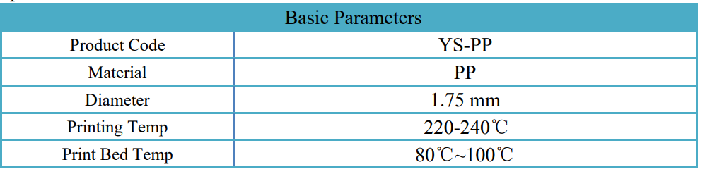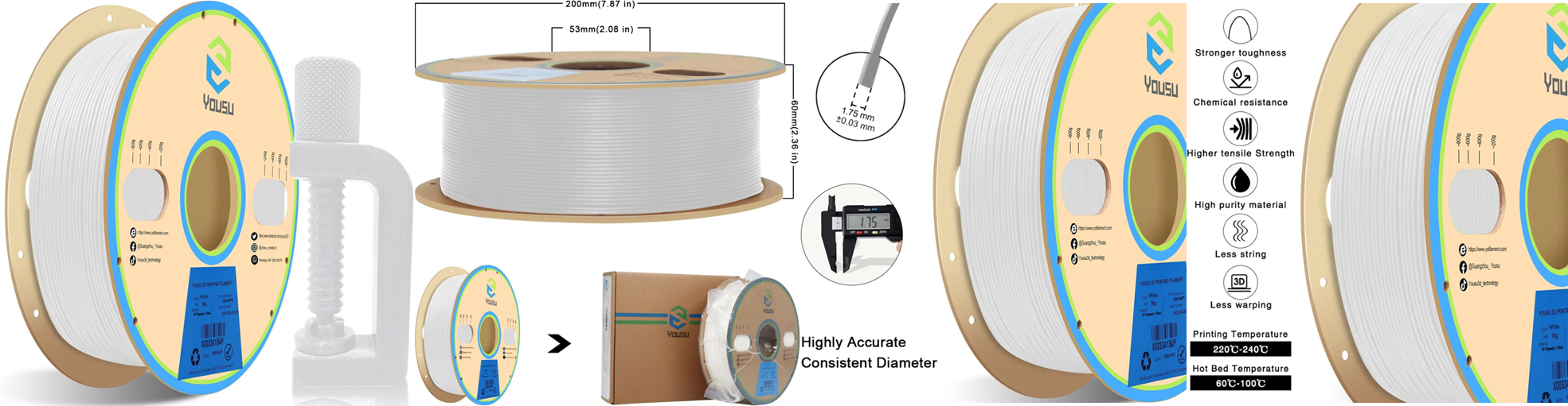 YOUSU PP 3D FILAMENT which is specially designed by Yousu 3D Technology Co., Ltd, limited for 3D FDM printer. As a popular product used in 3D printing, our product shows excellent mechanical and physical properties after printed as a part.